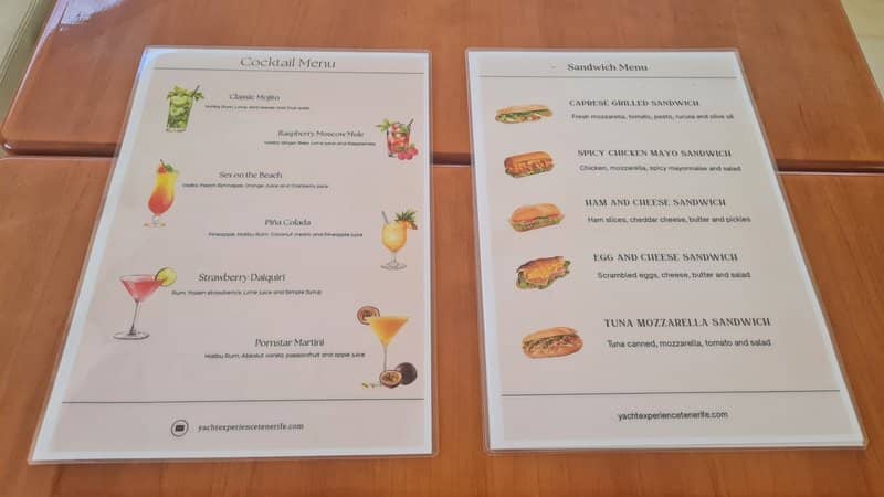 Selezione di cocktail e snack serviti durante la crociera.